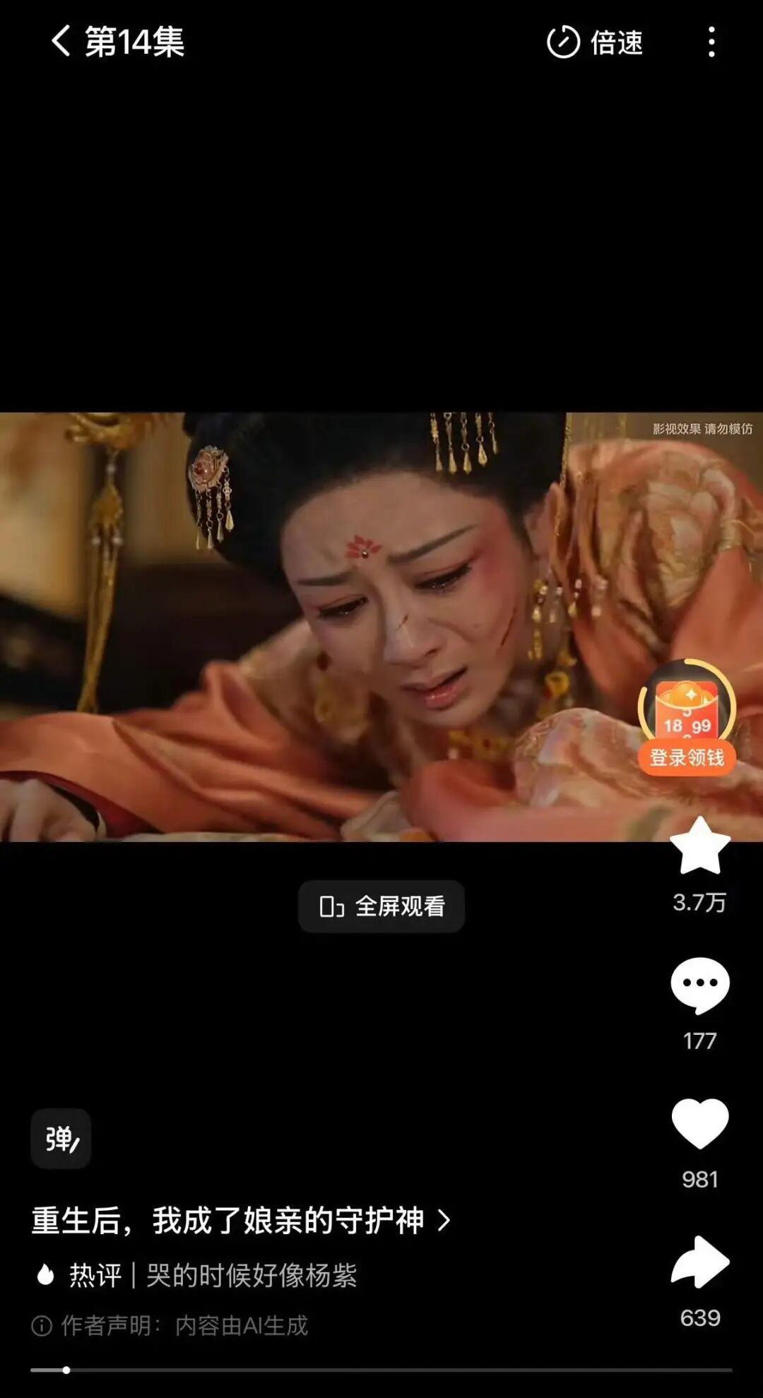 3月20日,话题#曝AI短剧使用杨紫的脸#登上热搜。有网友称AI短剧《重生后,我成了娘亲的守护神》第14集开头疑似使用了演员杨紫的脸。