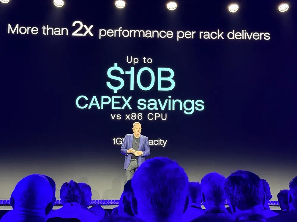 通过更多可用线程与更高单线程处理能力相互叠加,该芯片可实现单机架性能达到x86平台的2倍以上,每1GW的AI数据中心算力资本支出节省高达100亿美元。
