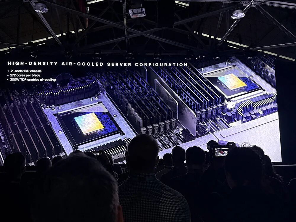 AGI CPU支持高密度1U服务器机箱的风冷部署方案。下图是一个标准OCP风冷机架。这些刀片服务器可在标准风冷36kW机架中满配部署,30台双节点1OU刀片服务器可提供总计8160个核心。