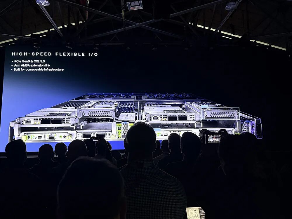 在互联方面,Arm AGI CPU采用96通道PCIe Gen 6接口,支持CXL 3协议,可连接任意加速器,同时支持内存扩展等功能。