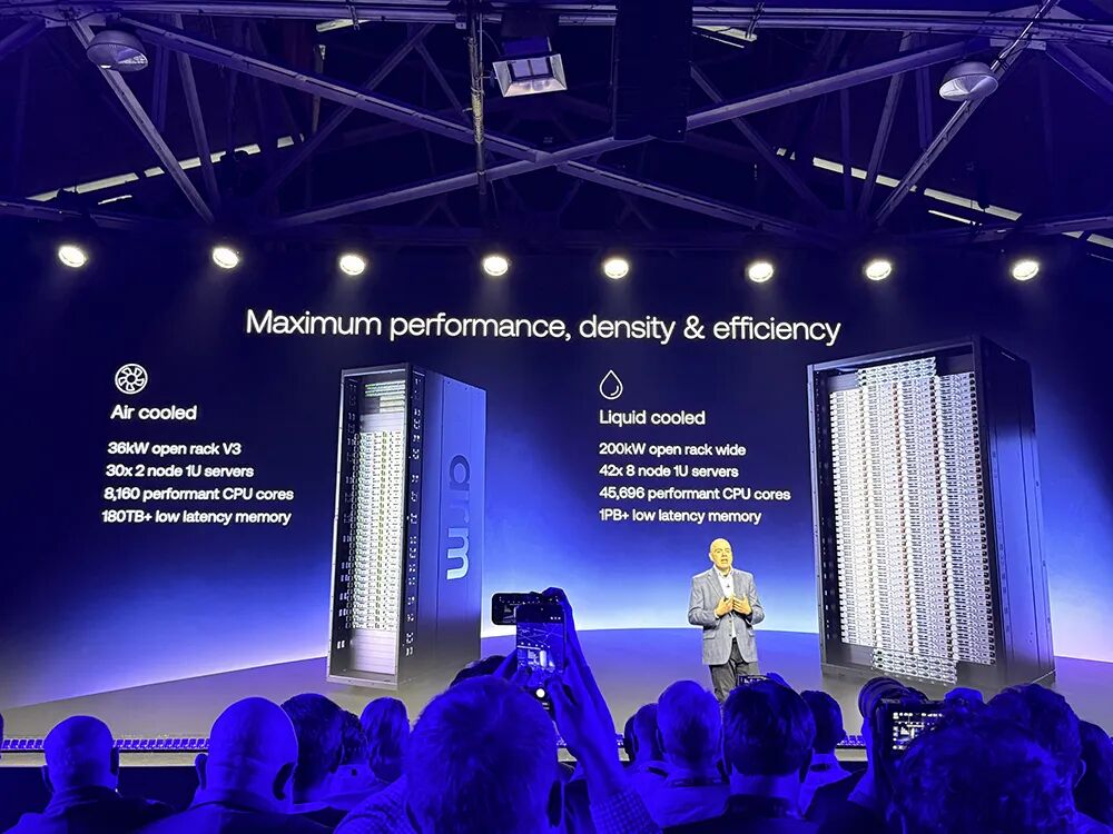 此外,Arm与Supermicro合作推出200kW液冷设计方案,可容纳336颗Arm AGI CPU,提供超过45000个核心。