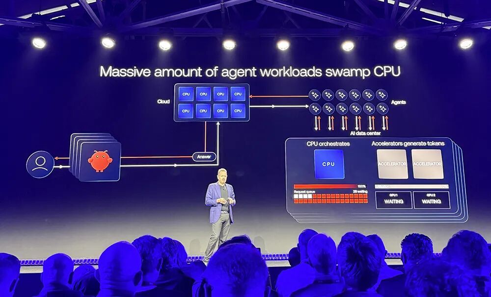 Rene Haas谈道,智能体的爆炸式增长催生更大的CPU需求。智能体本质上是一个工作流,大量工作涉及调度,这正是CPU所擅长的工作,是加速器做不了的。
