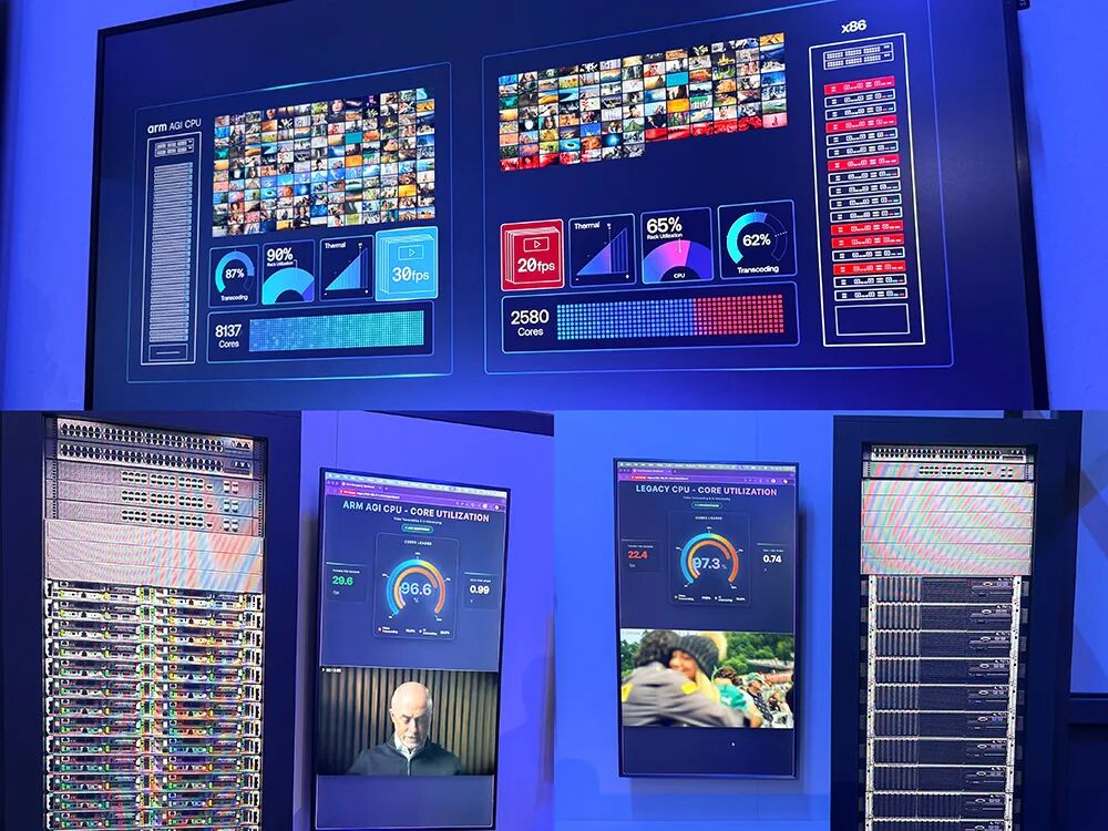 在大会展区,SK电信旗下Rebellions展示了使用Arm AGI CPU作为头节点,在同一台服务器中有一批加速器的实例。
