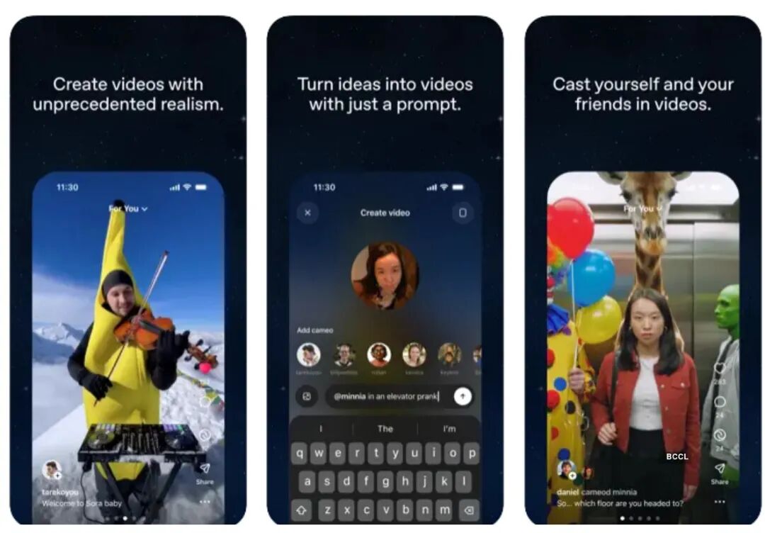 它不是一个简单的视频生成工具。OpenAI 给它设计了社交 feed 流,用户可以用 AI 生成视频、发布、互相观看。