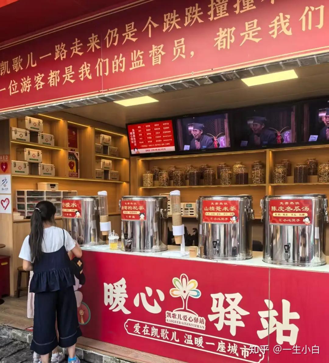 更反常的是,景区里到处都有免费的暖心驿站,提供茶水和饮用水。哪怕你什么都没带进来,也不会被迫去买一瓶高价矿泉水。