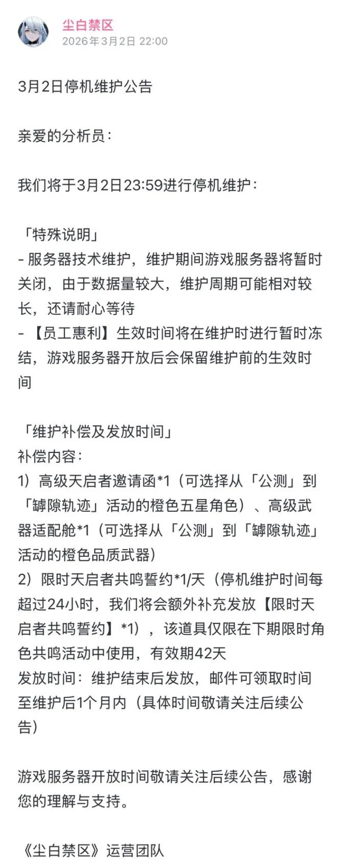 除了商业和口碑的维度,还有一种更为棘手的状况。今年初,《尘白禁区》进入“长期停机维护”(即事实上的停服),直接导火索就是与中国邮政的IP联动。将它作为“翻车”典型案例,我们可以重点看两个地方。