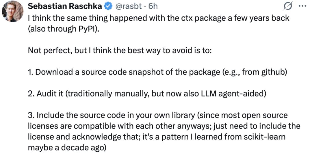 太阳底下无新事,Sebastian Raschka 发现此次攻击和数年前的 ctx 包事件非常相似。