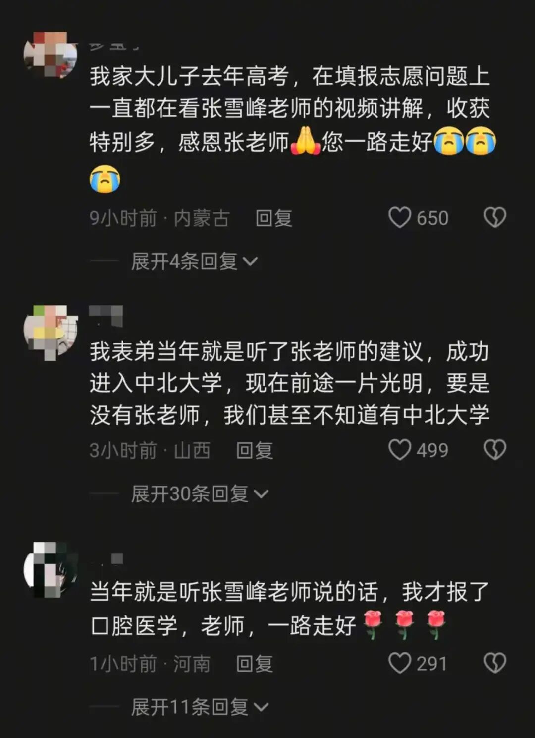 现在网上关于张雪峰的报道底下,总能看到感谢张雪峰的留言。