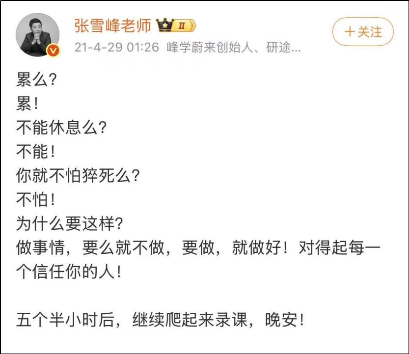 步履不停的张雪峰,最终倒在了路上。