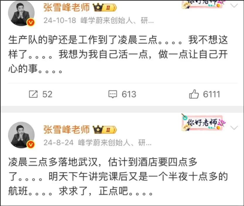 作为教育领域顶流IP,张雪峰的高强度工作模式早已超出常规教师或讲师范畴。