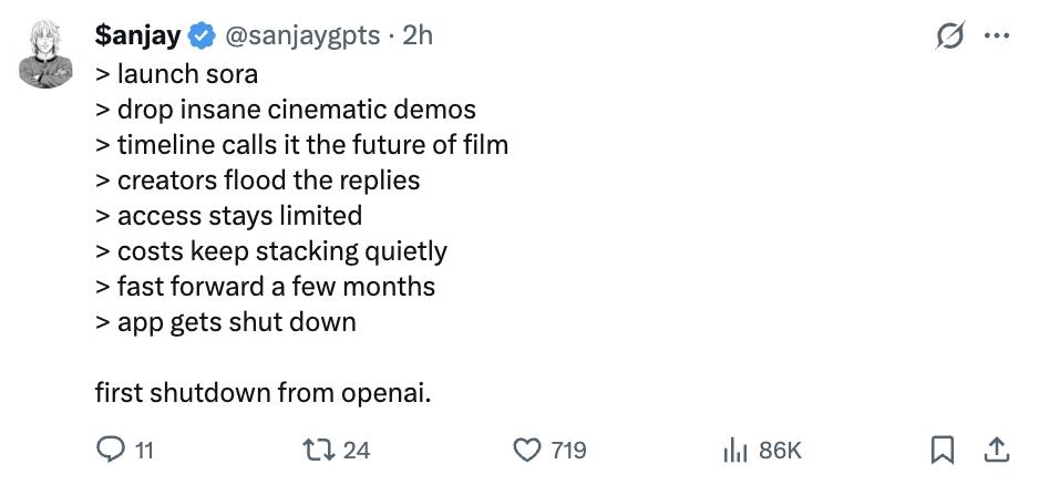 我勒个让人意想不到的突发,OpenAI刚刚宣布关停Sora!
