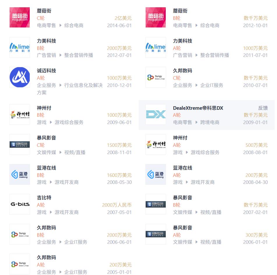 李丰早期投资代表案例 图源:IT桔子