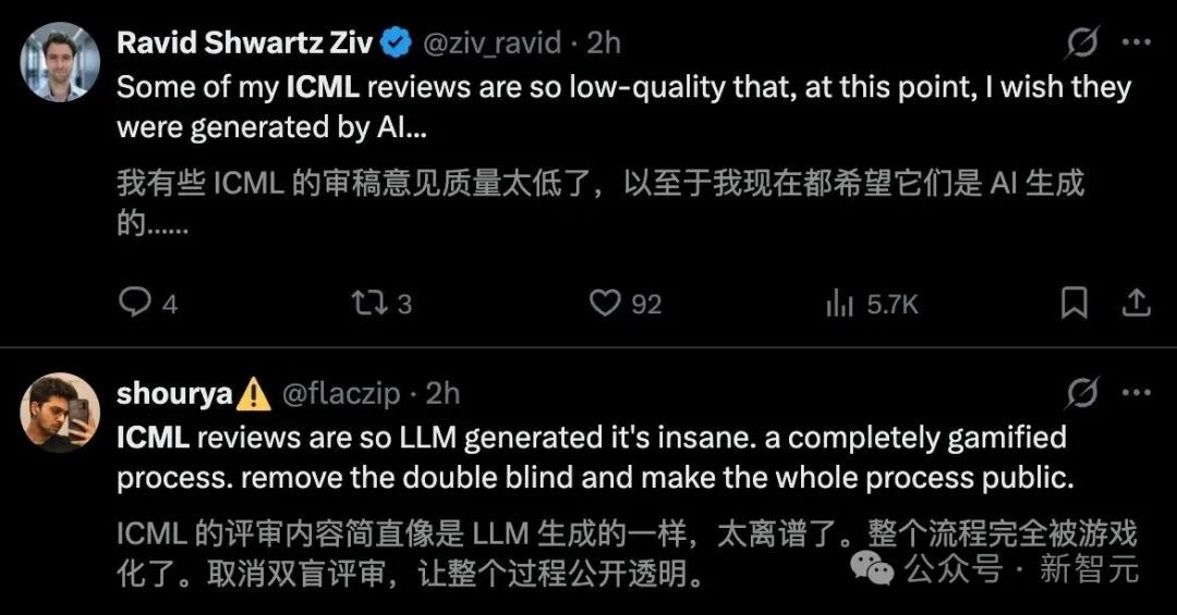 Meta研究员Ravid Shwartz Ziv直言,「审稿质量实在太烂了,说真的,我现在倒宁愿它们是AI生成的」。