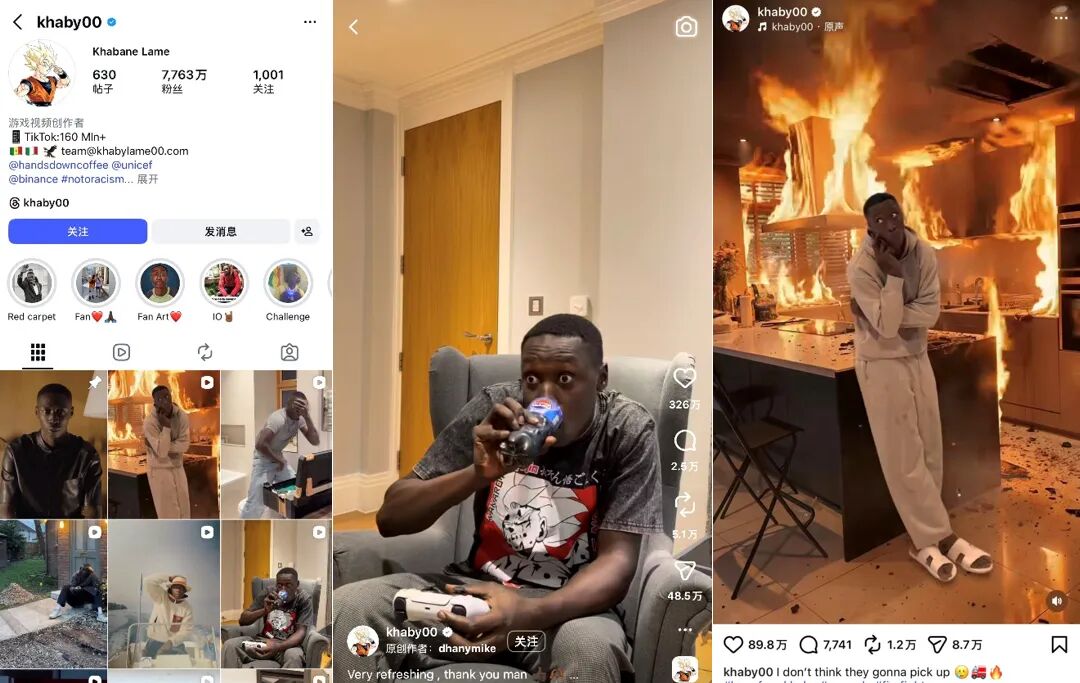 无语哥,又称面瘫哥,原名卡比·拉梅(Khaby Lame),是出生于非洲塞内加尔的一位搞笑博主,因发布无声反应类视频走红全球,目前TikTok粉丝已超1.6亿,Instagram粉丝7763万。