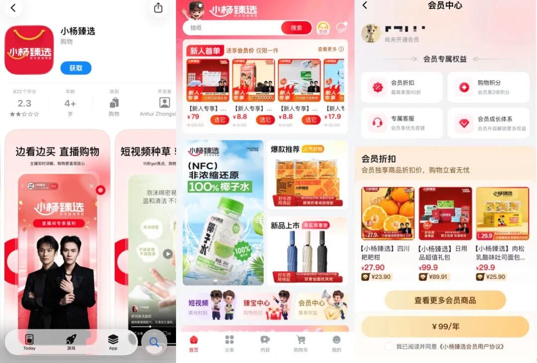 需要说明的是,小杨哥2023年就推出了自营品牌小杨甄选,只是曝光量远不及他本人,屡次因带货陷入争议的也不是自营品牌。被处罚后,自营品牌成为小杨哥挽救局面的方式之一,小杨臻选APP很快上线,会员费为每年99元,但市场反响平平。