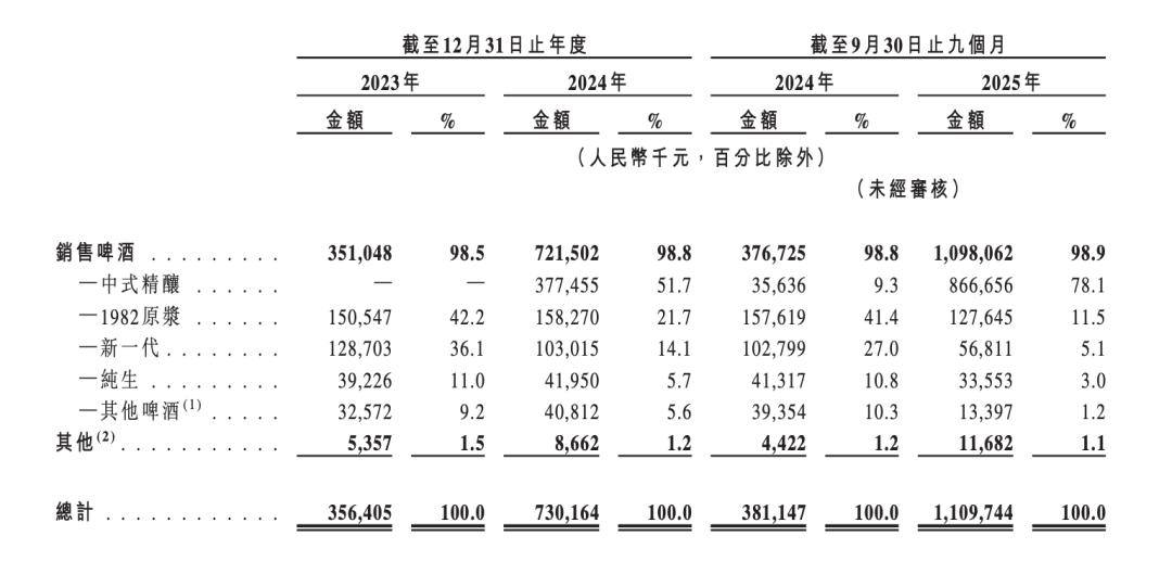 截至2025年9月30日,其中式精酿啤酒包含50个SKU,贡献了截至2025年9月30日止九个月收入的78.1%,成为绝对增长引擎。