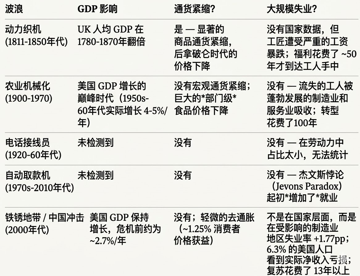在现代史的进程中,社会各界对新技术或结构性转变会引发永久性的失业浪潮的担忧曾反复出现。以下是几个典型案例: