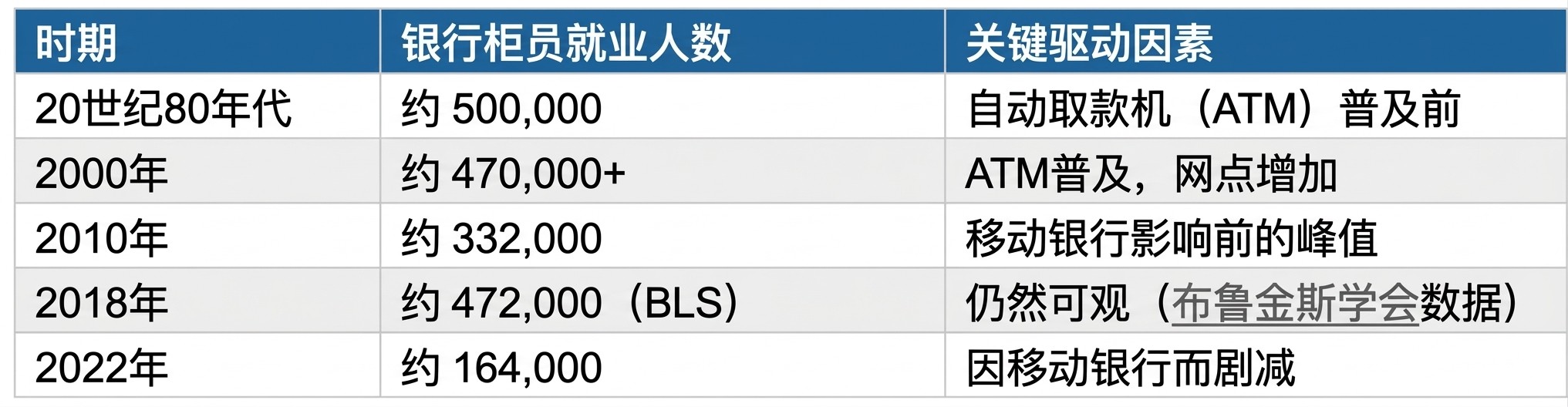 案例 4:ATM 与银行柜员(1970 年代–2010 年代)
