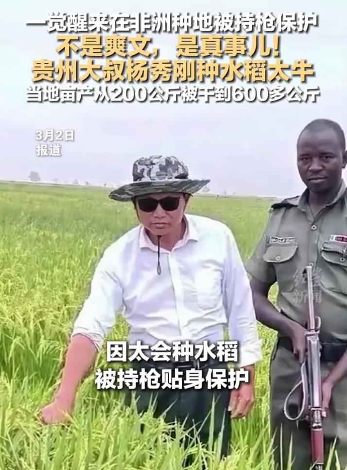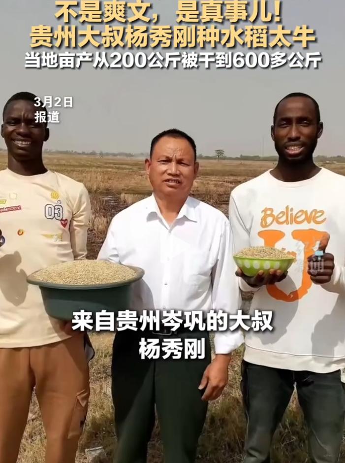 《重生之我在非洲教种水稻成为酋长这件事》,虽然现实没有这么夸张,但也相当离谱,这位叫做杨秀刚的贵州大叔,在2017年被派往尼日利亚指导种水稻后,一去就是七年。