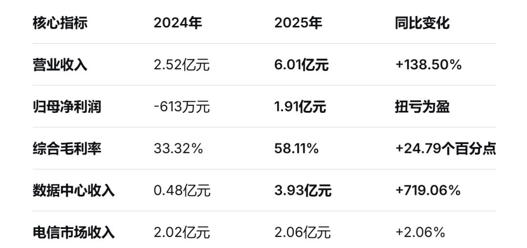 首先,业绩的惊天逆转是最硬的底气。2025年,源杰科技交出了一份堪称“炸裂”的答卷:全年营收6.01亿元,同比增长138.5%;归母净利润1.91亿元,同比暴增3212.62%,成功扭亏为盈。