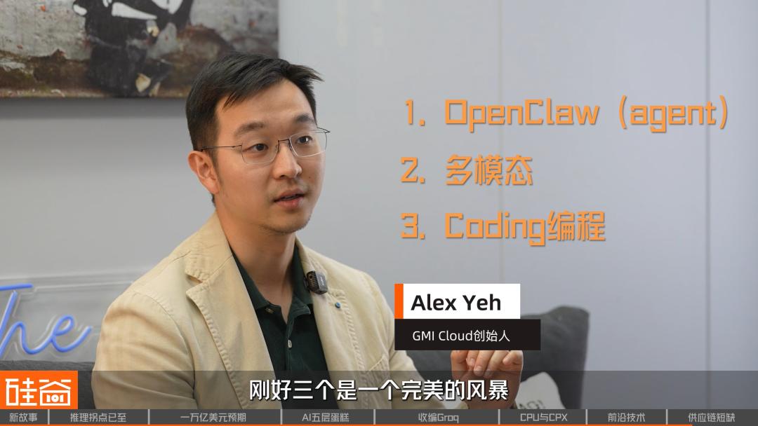新云(Neocloud)厂商GMI Cloud创始人Alex Yeh在跟我们对话中就透露,北美的需求暴增是来自多模态和编程,而OpenClaw带来的token需求则主要来自中国。