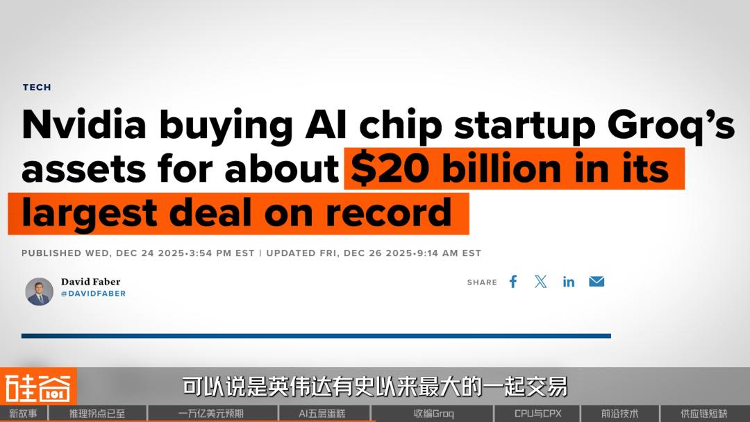 第一个信号就是在芯片层,老黄发布了基于Groq研发出的LPU。要知道,对Groq的非独家技术授权交易是去年12月圣诞节前后才宣布的,花了200亿美元现金,可以说是英伟达有史以来最大的一起交易。