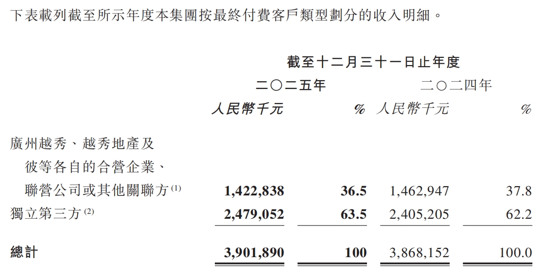 越秀服务2025年收入结构