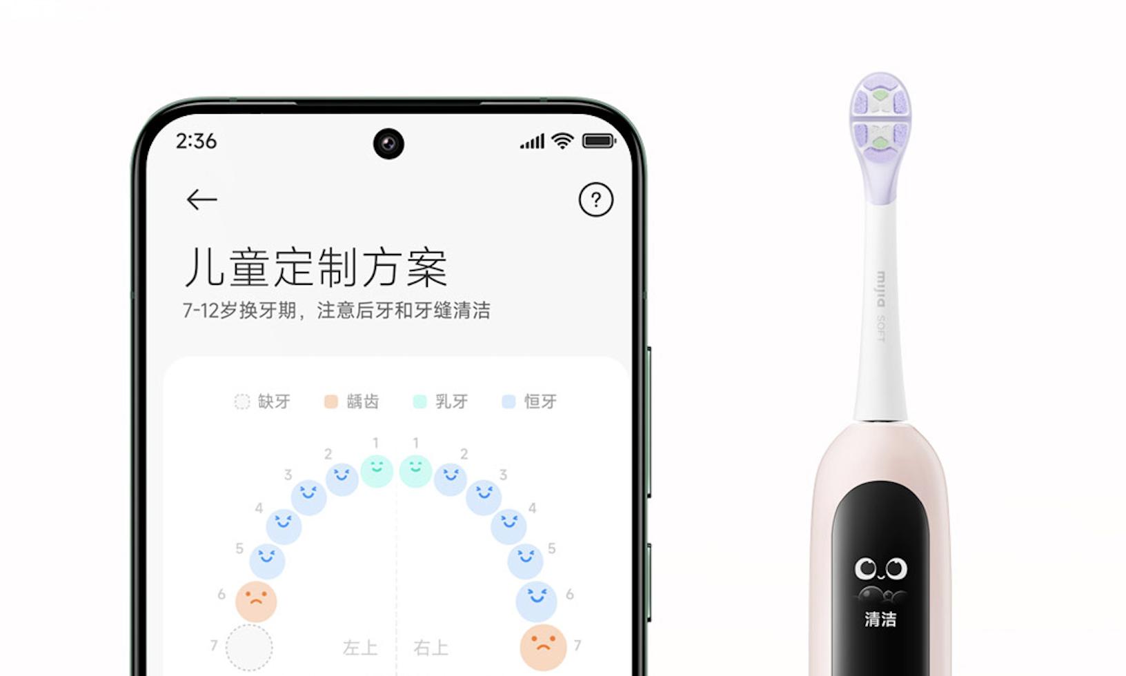 AI算法,还应用在与这款牙刷配对的米家App功能上。家长可用米家App创建儿童牙齿档案,标记缺牙、蛀牙等情况,AI算法会针对标记区域定制刷牙方案。米家App也可实时追踪刷牙时长、覆盖率等数据,生成儿童专属刷牙报告,便于家长随时监督孩子漏刷、未刷净等情况。