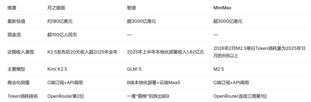 今年初,智谱与MiniMax相继登陆港股。即便在商业化模型尚不完善、依然面临巨额亏损的情况下,两者的市值依然双双冲破了3000亿港元大关。春节期间,智谱和MiniMax的估值已经能够超过快手、比肩京东。
