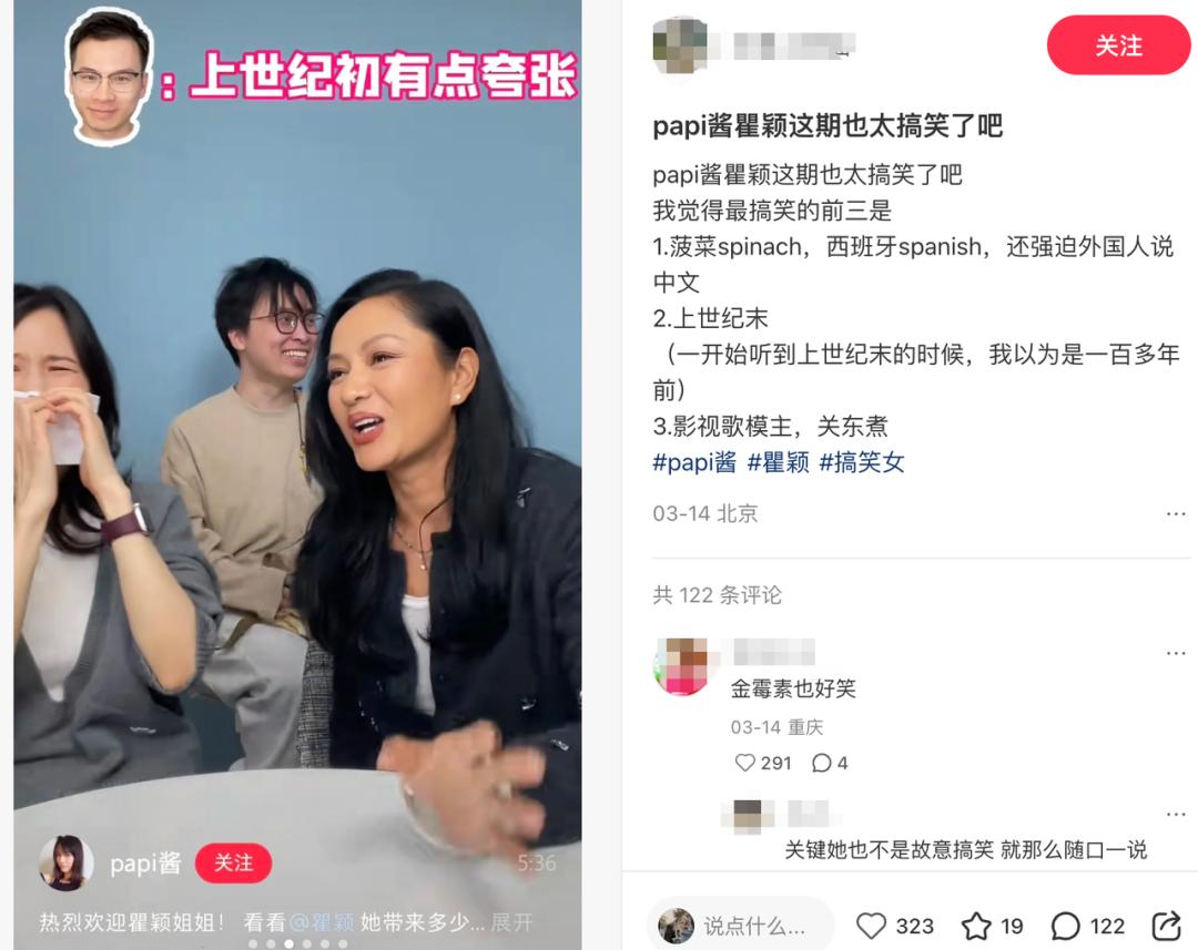 54岁的瞿颖,凭借在轻访谈节目《papi热烈欢迎》中真实幽默的分享意外翻红,整期节目笑点密集、传播度极高。综合抖音、小红书、B站三大平台的点赞、评论数量,这期视频已成为该系列栏目热度最高的一期。