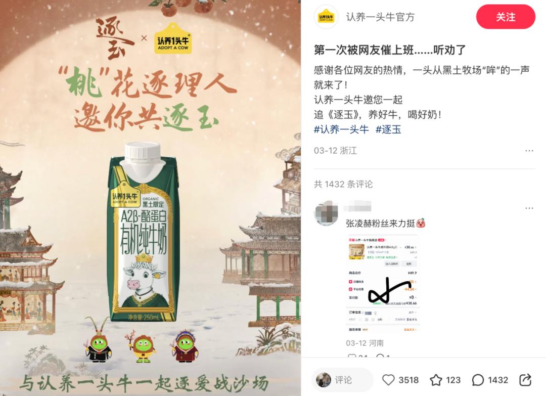 凭借极强的网感和精准卡点,认养一头牛成功将一次常规剧集赞助转化为现象级社媒传播事件。