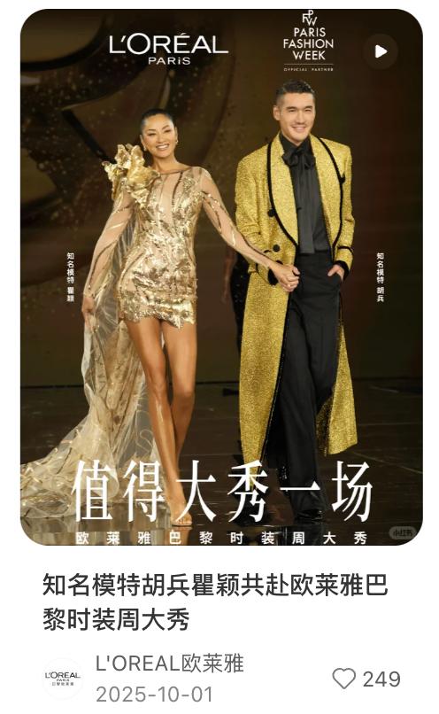 事实上,近两年来瞿颖并非暂停营业状态,上一次公开营业是去年年底,她携手胡兵受邀登上了巴黎时装周欧莱雅的秀场。
