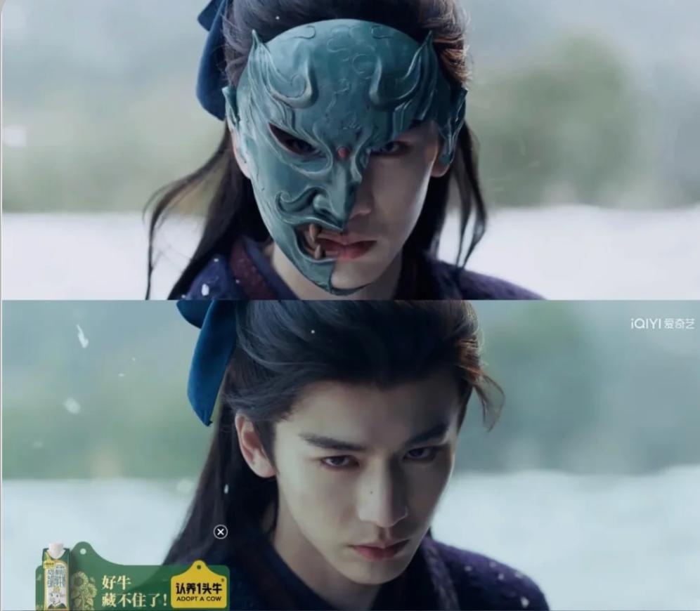 在品牌下场“玩梗式”致歉后,后续广告投放精准切入男主面具掉落、身份揭晓的高光名场面,搭配“好牛,藏不住了”的弹幕式文案,形成了与剧集高度贴合的场景化植入。