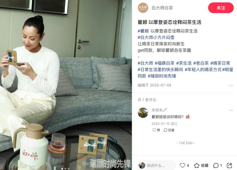 不过,据剁椒Spicy不完全盘点,近两年来,瞿颖出面推广站台的品牌多为面向中老年龄层级的小众或贵妇品牌,自2024年至今,瞿颖先后与NAERSI娜尔思、养生品牌Iroelina宜令、法国院线修护品牌PIER AUGE佩尔赫乔、白大师茶、Megafood女性复合维生素等多个品牌进行了社交媒体端的广告合作,这些都是其翻红之前的短期合作。