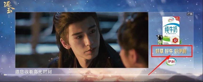 此外,伊利还借势此前热度高涨的影视剧《逐玉》,通过广告植入实现了一次典型的内容出圈营销。