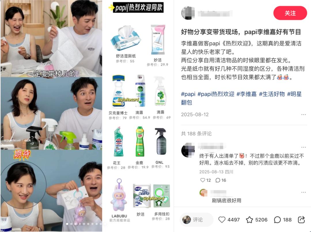 在瞿颖之前,这档节目的种草威力已经有口皆碑。例如,此前李维嘉做客时分享的各种清洁好物,就在社交媒体上引发广泛关注和讨论。