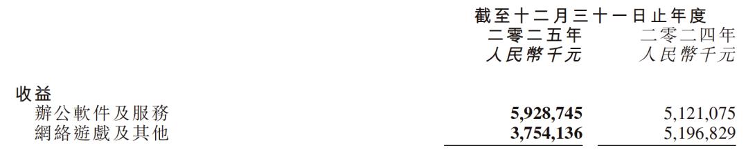 另一边,则是业务结构上的进一步分化。过去一年,办公软件及服务业务继续增长,全年收入达到59.29亿元,同比增长16%;相比之下,网络游戏及其他业务收入为37.54亿元,同比下滑28%。可以说,这份财报最值得注意的,是金山内部不同业务板块的发展节奏,正在进一步拉开。