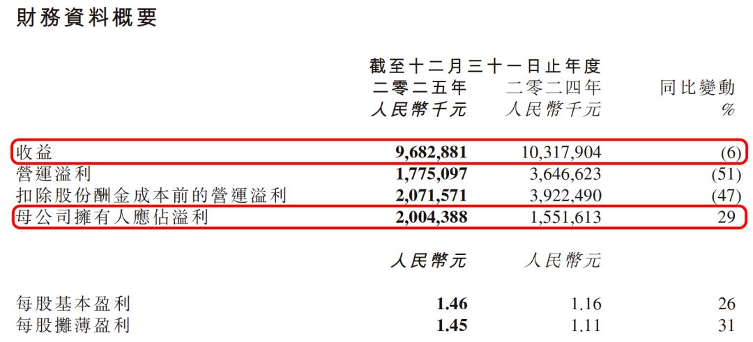 一边是利润端依然好看:2025年,金山软件实现总收入96.83亿元,同比下降6%;营运溢利17.75亿元,同比下滑51%,但母公司拥有人应占溢利却增长至20.04亿元,同比增长29%。