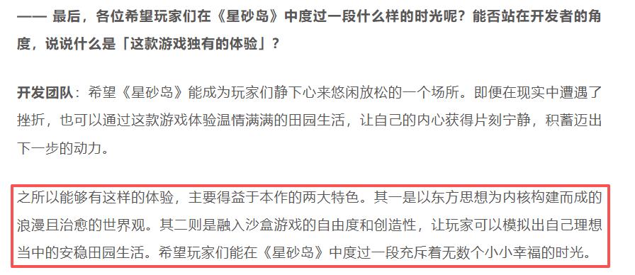 (截自《Fami 通《星砂岛》主创访谈:温馨氛围下的悠闲生活》)