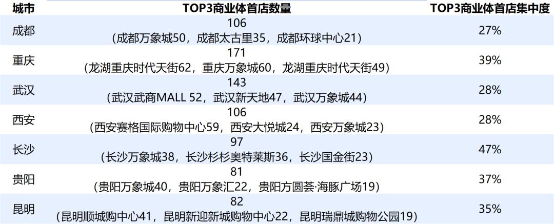 首店集中度:长沙最集中,龙湖重庆时代天街成最多“收割机”