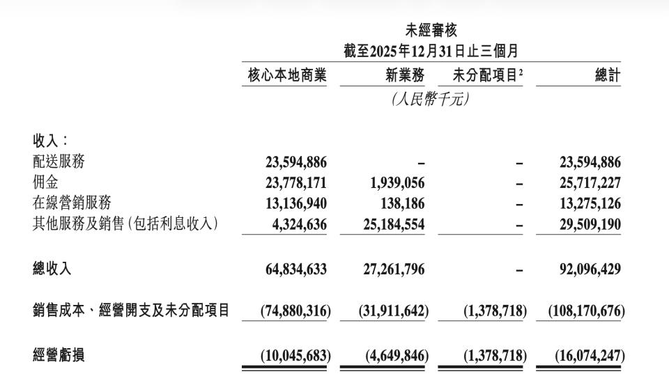 全年看,利润由盈转亏背后,最突出的变量是销售及营销开支从640亿元增至1029亿元,同比增长60.9%;其中推广、广告及用户激励从391亿元增至745亿元。与此同时,销售成本由2078亿元增至2538亿元,同比增长22.2%;核心本地商业从2024年的经营溢利524亿元转为2025年的经营亏损69亿元。