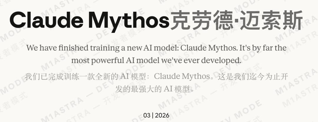 Claude Mythos是一款远超以往、我们迄今开发过的最强大的AI模型。