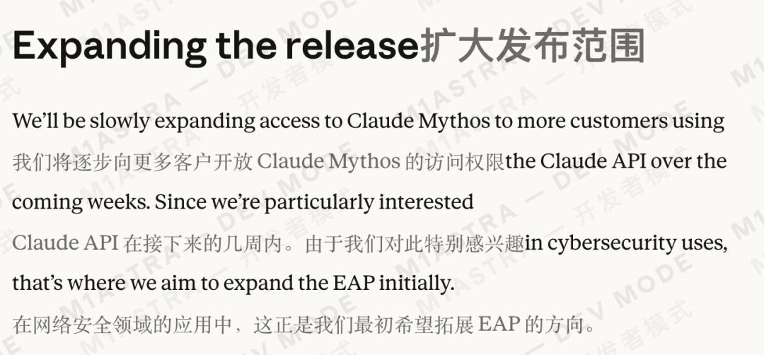 甚至,据传未来几周,Anthropic将通过Claude API对外开放Mythos。