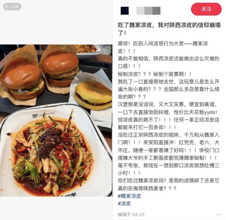 颇为黑色幽默的是,名叫“魏家凉皮”,网友们的共识却是:“魏家除了凉皮,别的都好吃”。