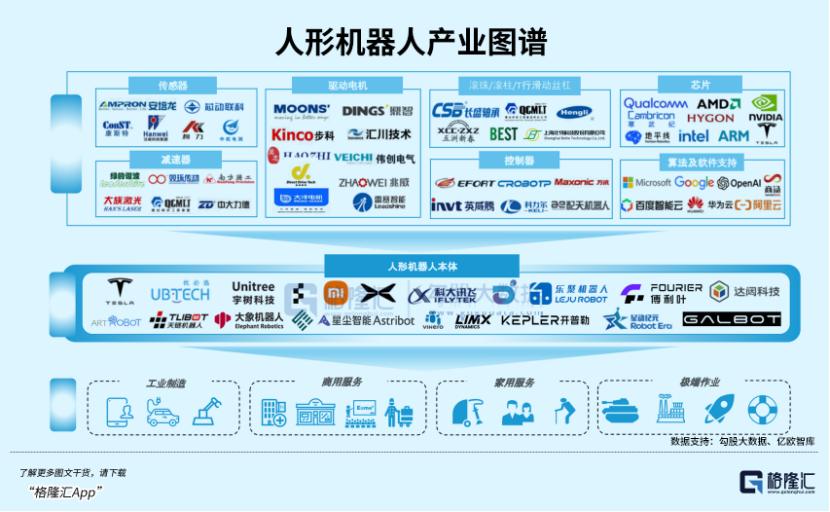 国内人形机器人产业链较为完整,包括整机制造、核心零部件(电机、传感器、控制系统)、软件算法和服务生态。