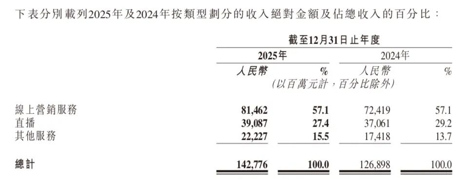 作为第二增长曲线,快手的其他服务收入规模最少,但是增速最高。财报显示,2025年其他服务的收入达到了222亿元,同比增加27.6%,主要由于电商业务及可灵AI业务的增长。