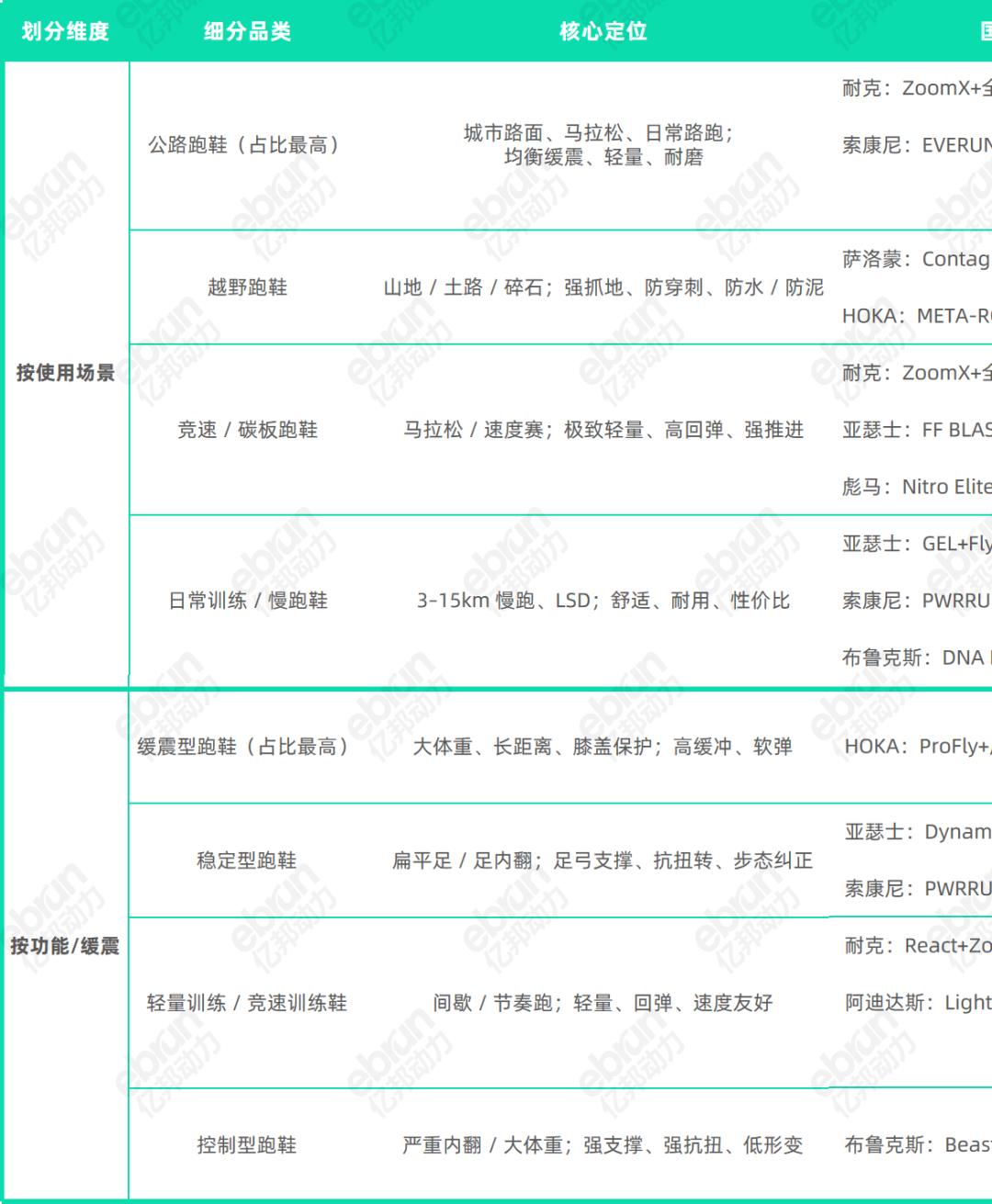 火热的跑步市场,可以划分出三大核心品类,即跑步鞋、跑步服装和跑步配件。