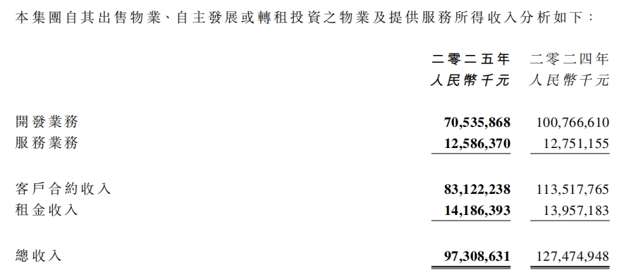 从数据上来看,龙湖开发业务的收入在2025年首次降至千亿以下,运营及服务业务的收入创下新高。
