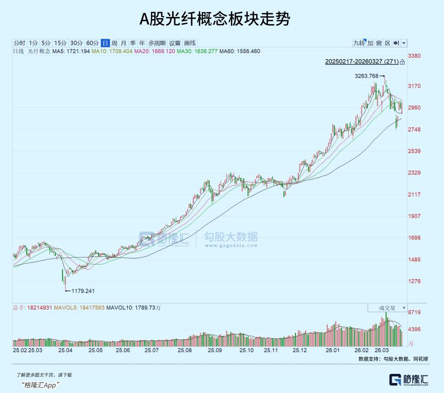 2025年12月以来,光纤光缆板块指数强势拉升,长飞光纤连涨4日市值再创新高,通鼎互联、特发信息等纷纷涨停,板块成交量显著放大。