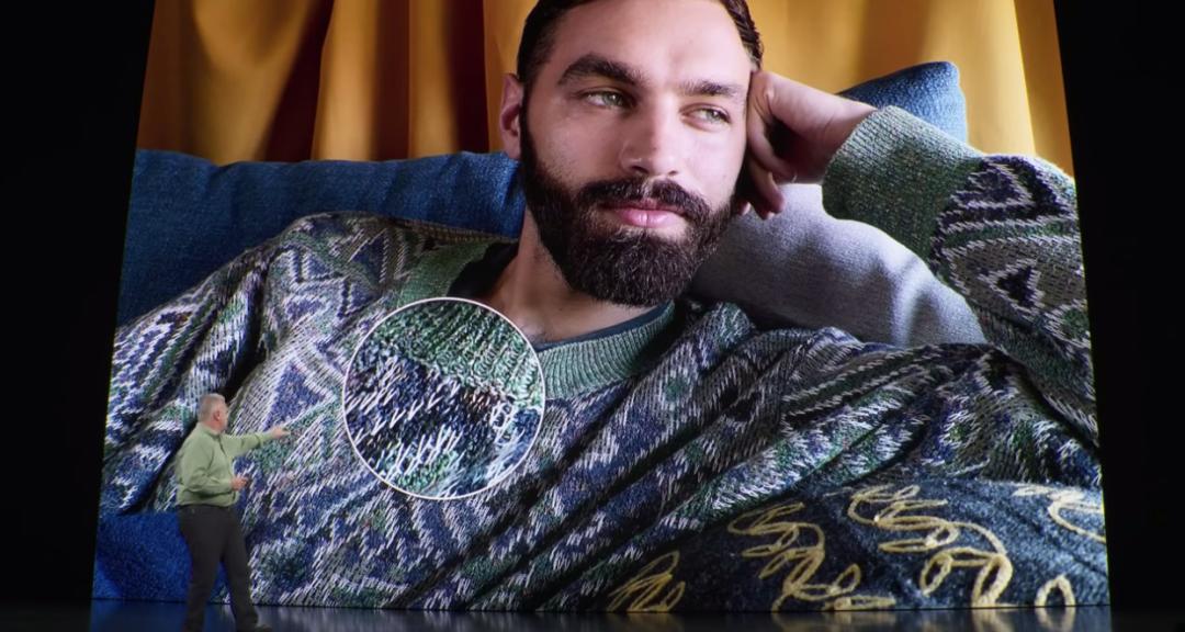 2019 年,随 iPhone 11 系列推出的 Deep Fusion(深度融合)是苹果计算摄影的真正分水岭。发布会上,苹果高管 Phil Schiller 专门放大了一件毛衣的针织纹理,骄傲地展示机器学习如何还原每一根线头的细节。